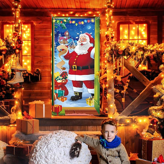 🎁🎄2025 Nová, horúca predajná látková vianočná obálka na dvere [91 cm x 203 cm]