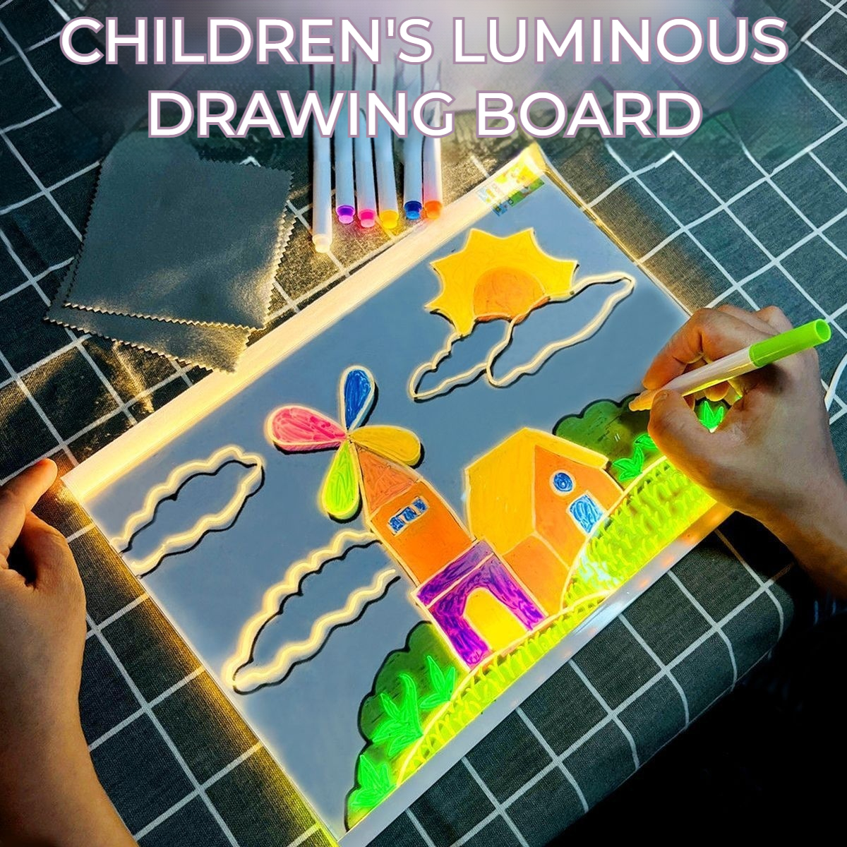 🎨💡✏️🔥Kupte 1 a získejte 1 zdarma🔥Dětská světelná kreslicí deska, ručně vyrobená DIY graffiti mazatelná vzdělávací fluorescenční kreslicí deska