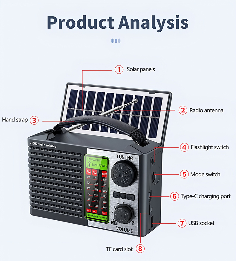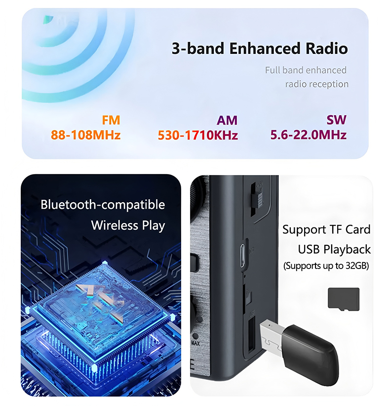 💥🏕️ Multifunkční přenosné rádio, AM rádio, pevná karta Bluetooth, vícezónový zvuk