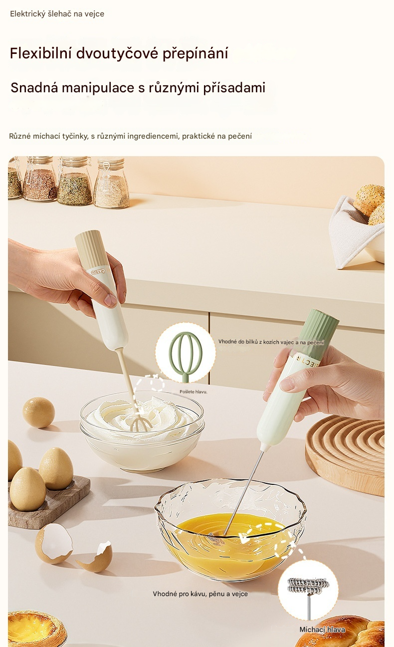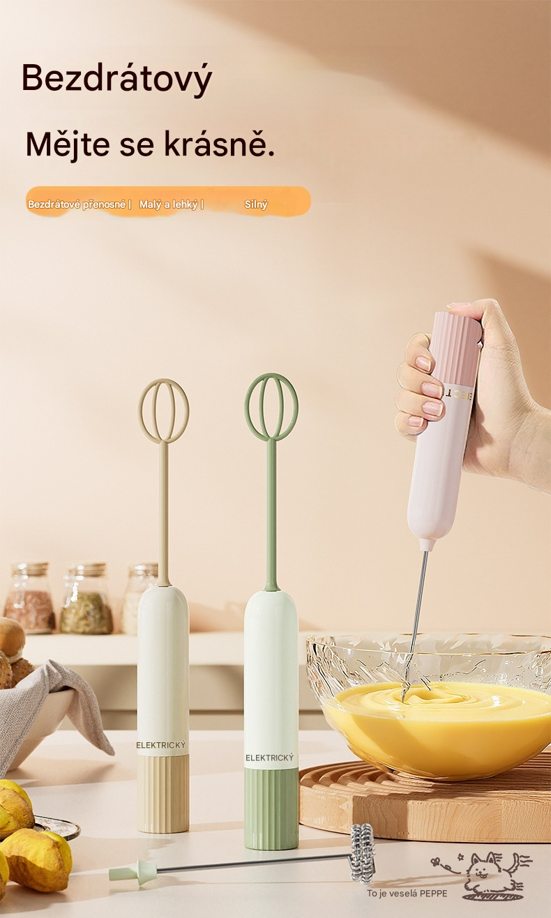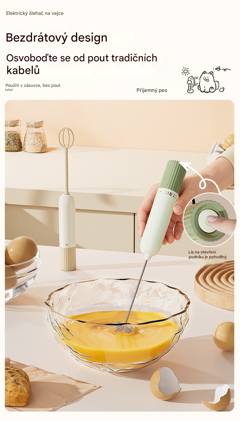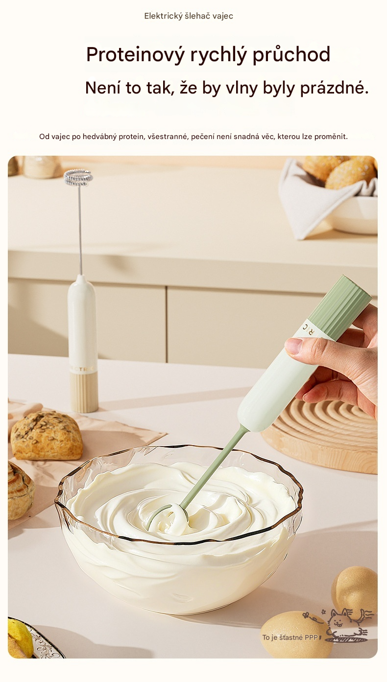 🥚 Bezdrátový mini ruční mixér – během několika sekund vyšlehá vejce a napění mléko