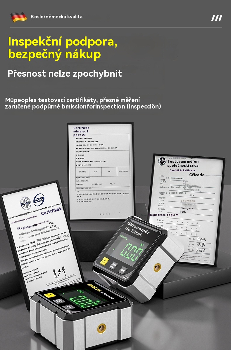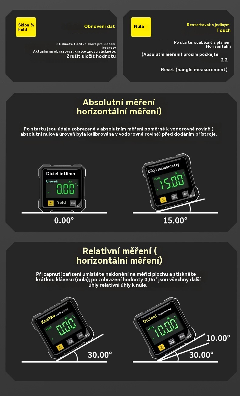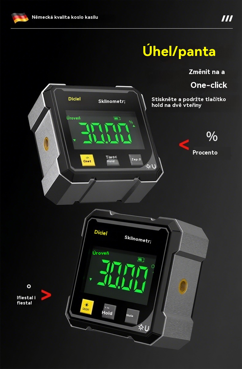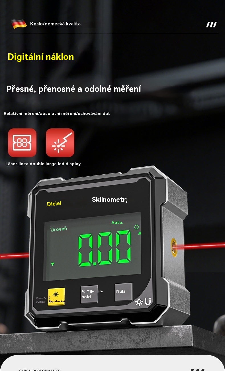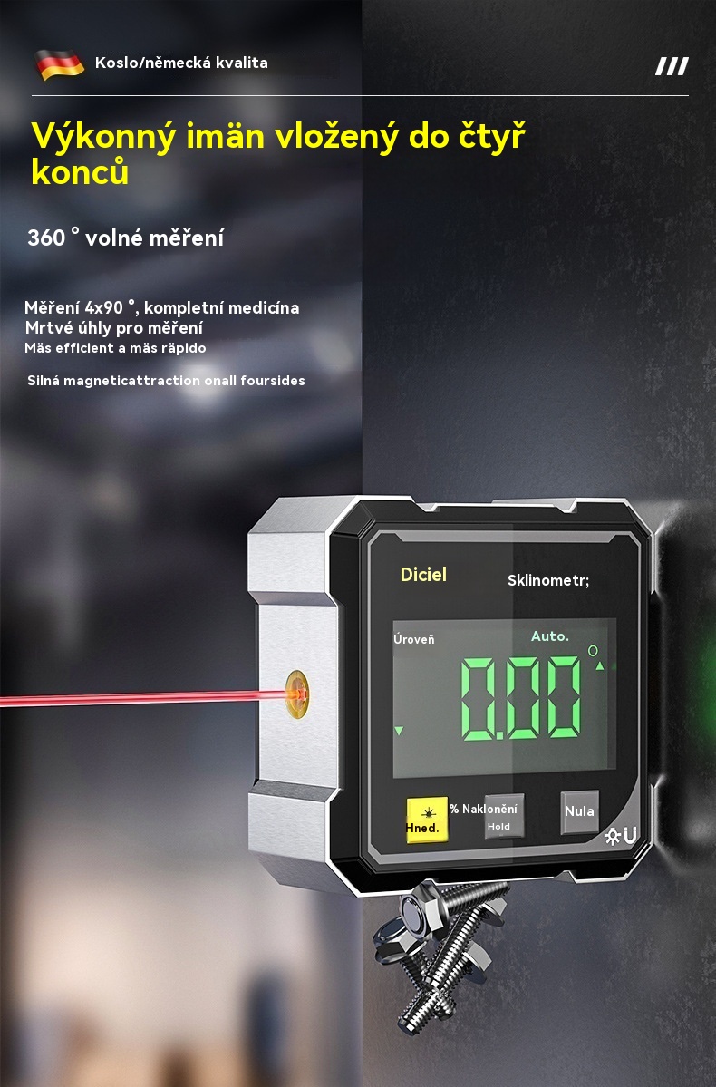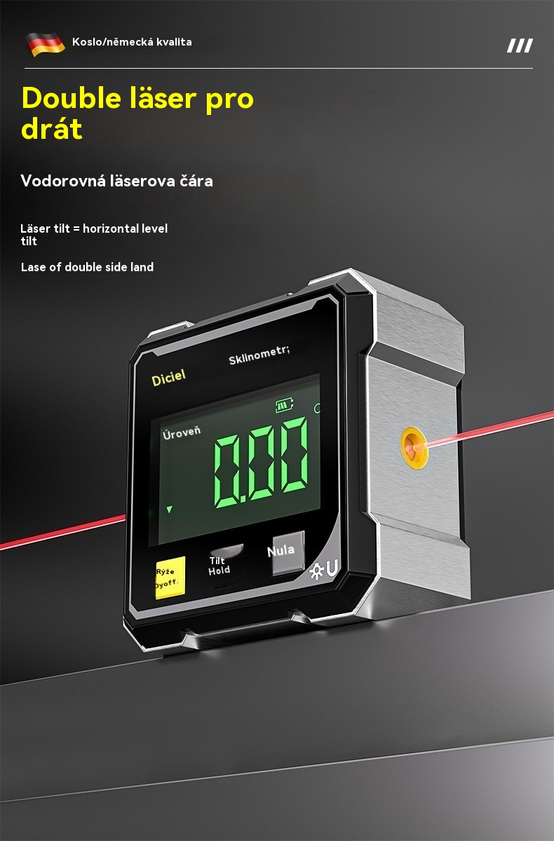 Oboustranná laserová vodováha a čtyřstranná magnetická přísavka