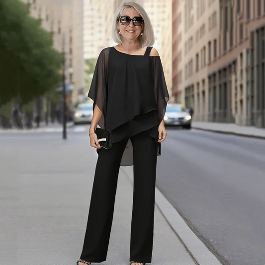 ⏳ Oferta por tiempo limitado ⏰【50-120KG】👚👖 Conjunto de dos piezas para mujer, tejido suave con hombros descubiertos ✅【Blusa + Pantalón】
