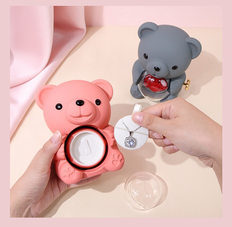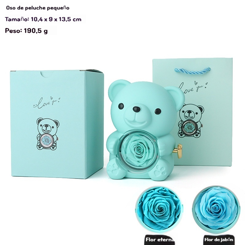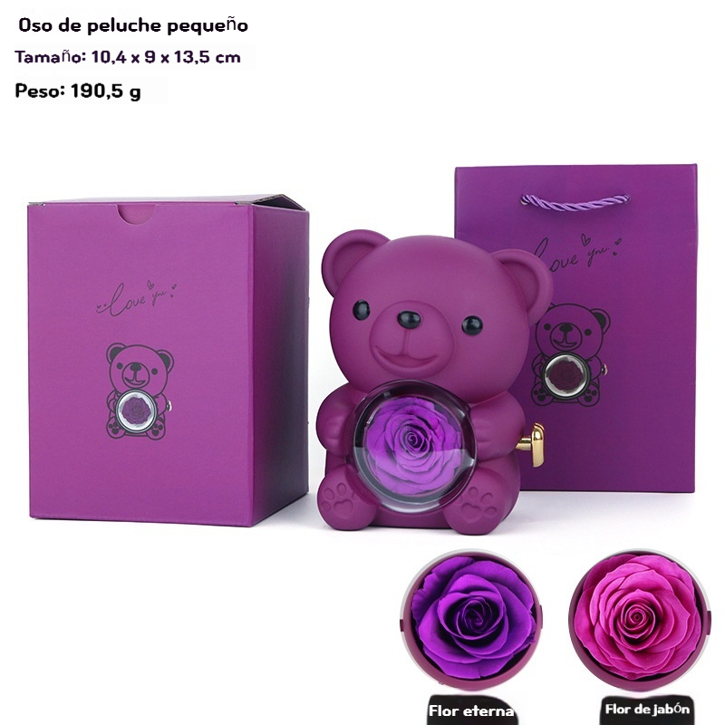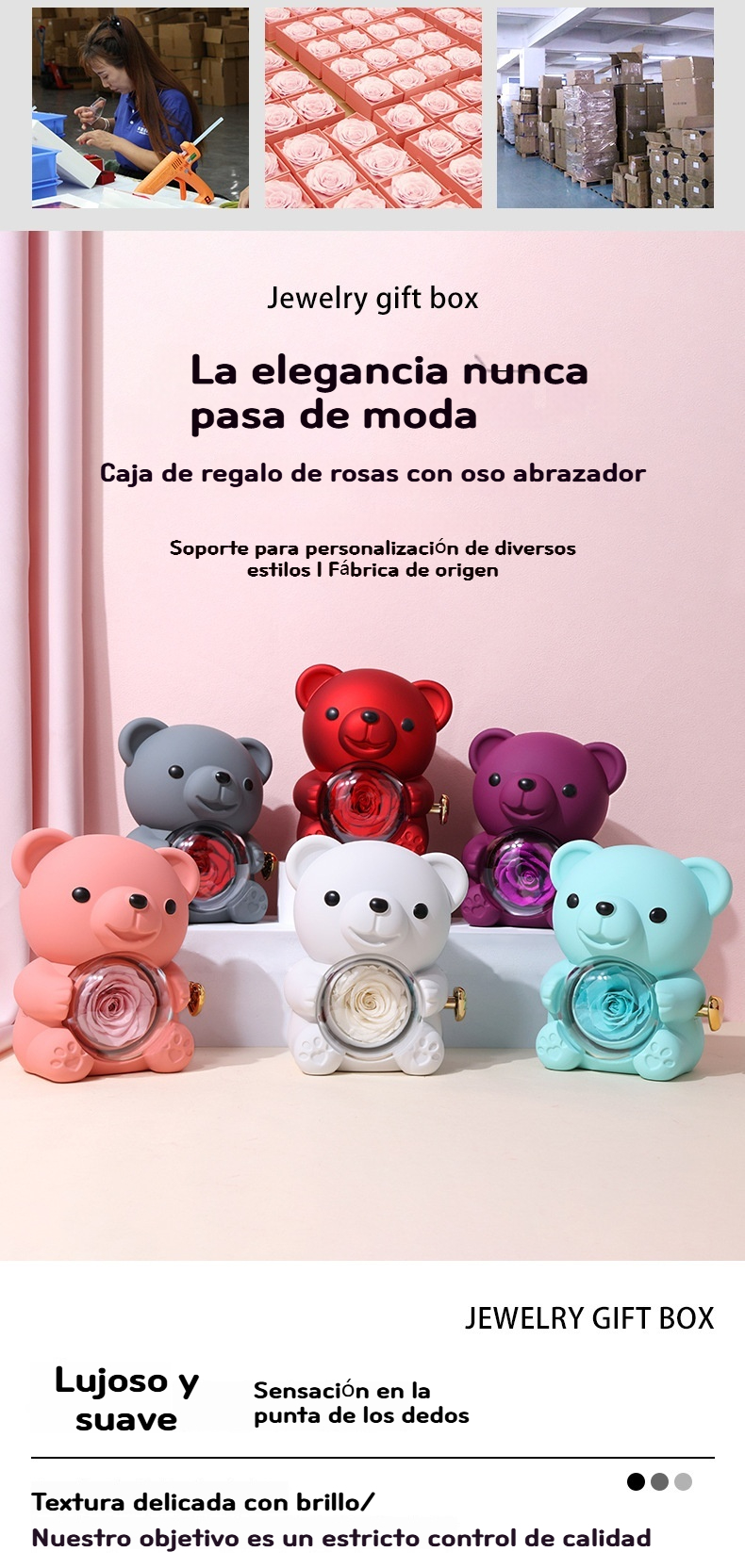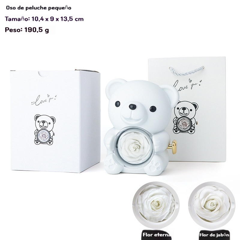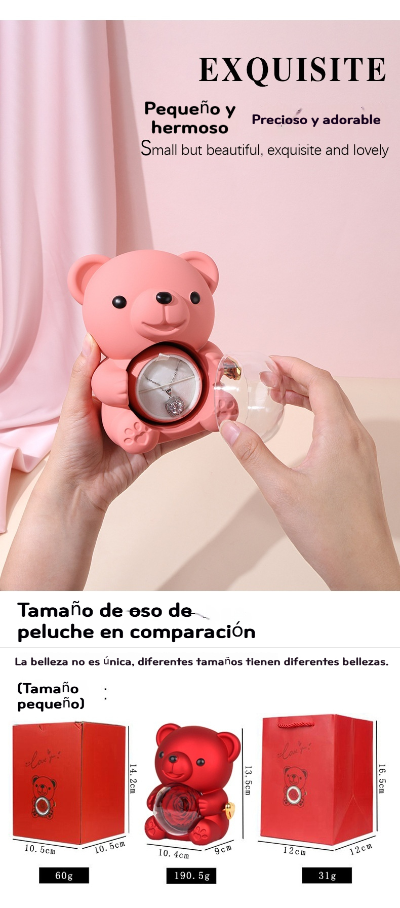 ✨Un osito de peluche combinado con rosas preservadas y un collar es un regalo romántico para el Día de San Valentín.