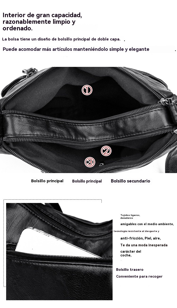 👜 Elegante bolso de hombro de cuero suave de gran capacidad