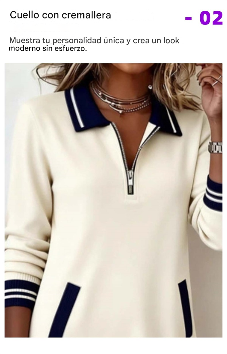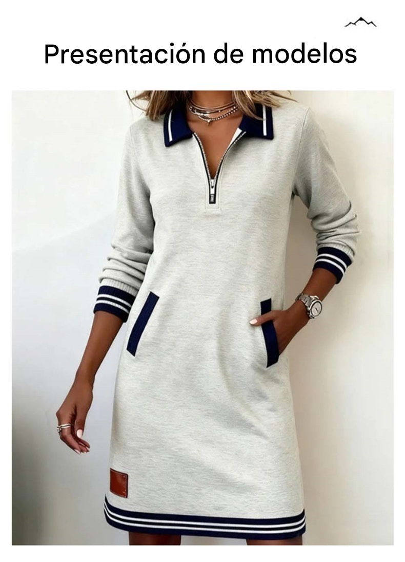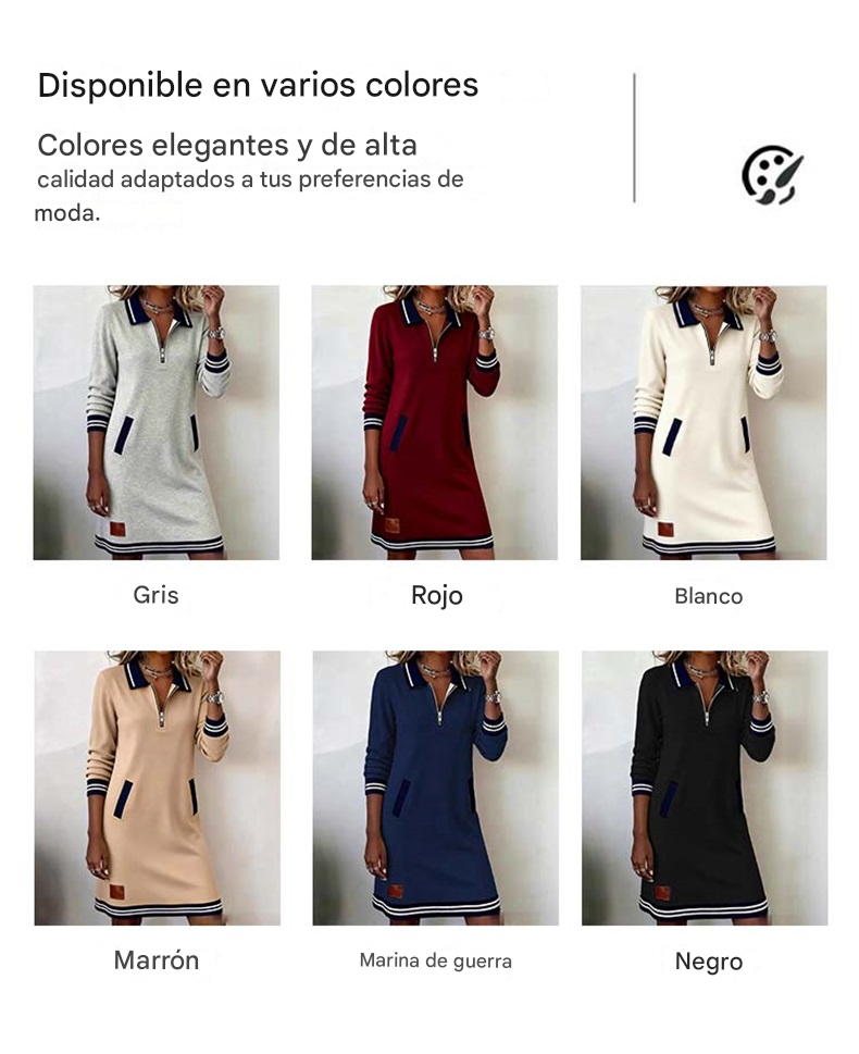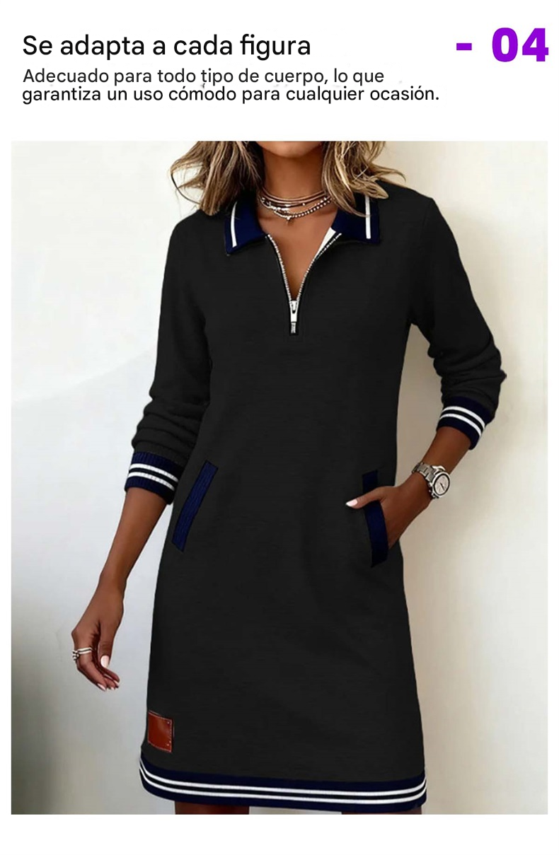 🔥🔥【40-100kg】Nuevo vestido casual de invierno con cremallera, cuello, manga larga y bolsillo en bloque de color