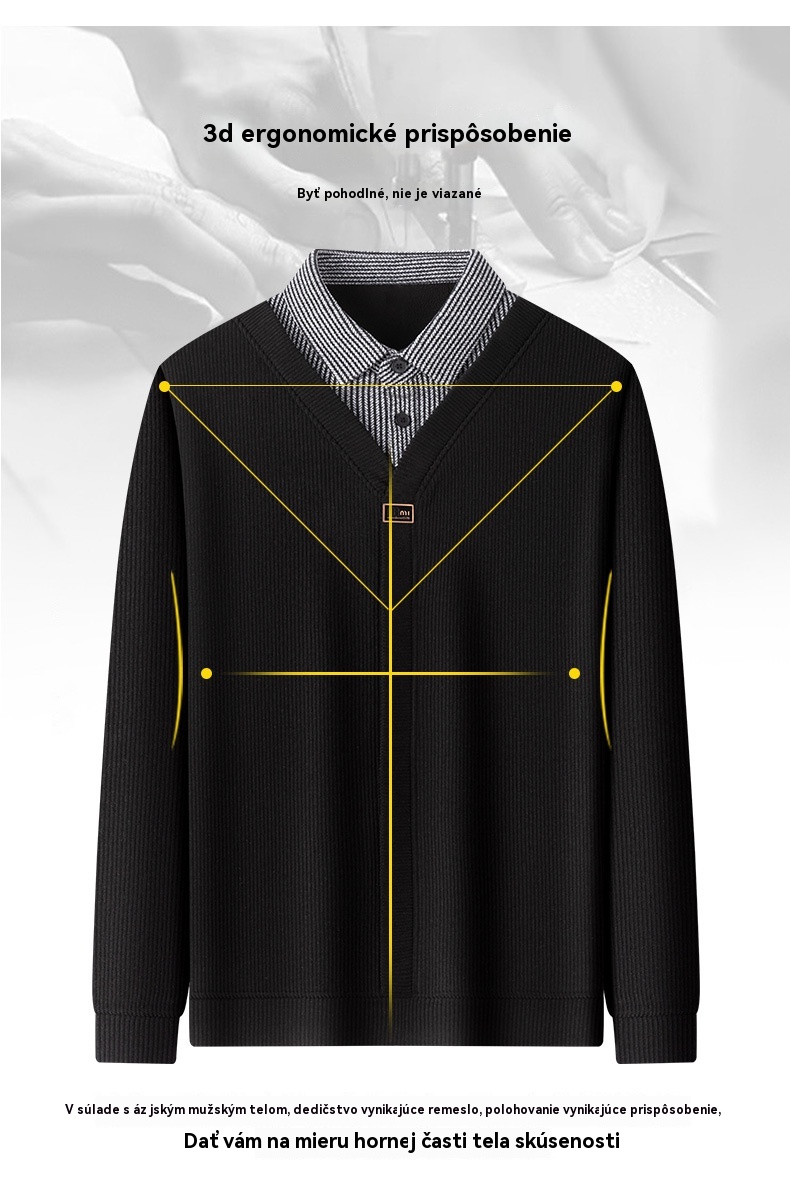 【Skvelé ponuky】Nové pánske dvojdielne tričko v zimnom štýle s imitáciou flísu a golierom v štýle patchwork, zhrubnuté a teplé, vhodné pre mužov stredného a mladšieho veku.